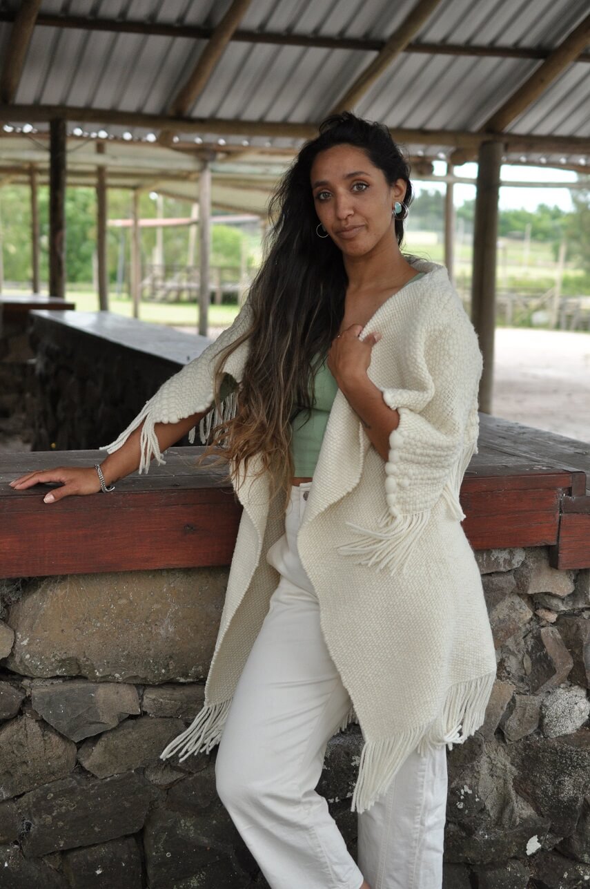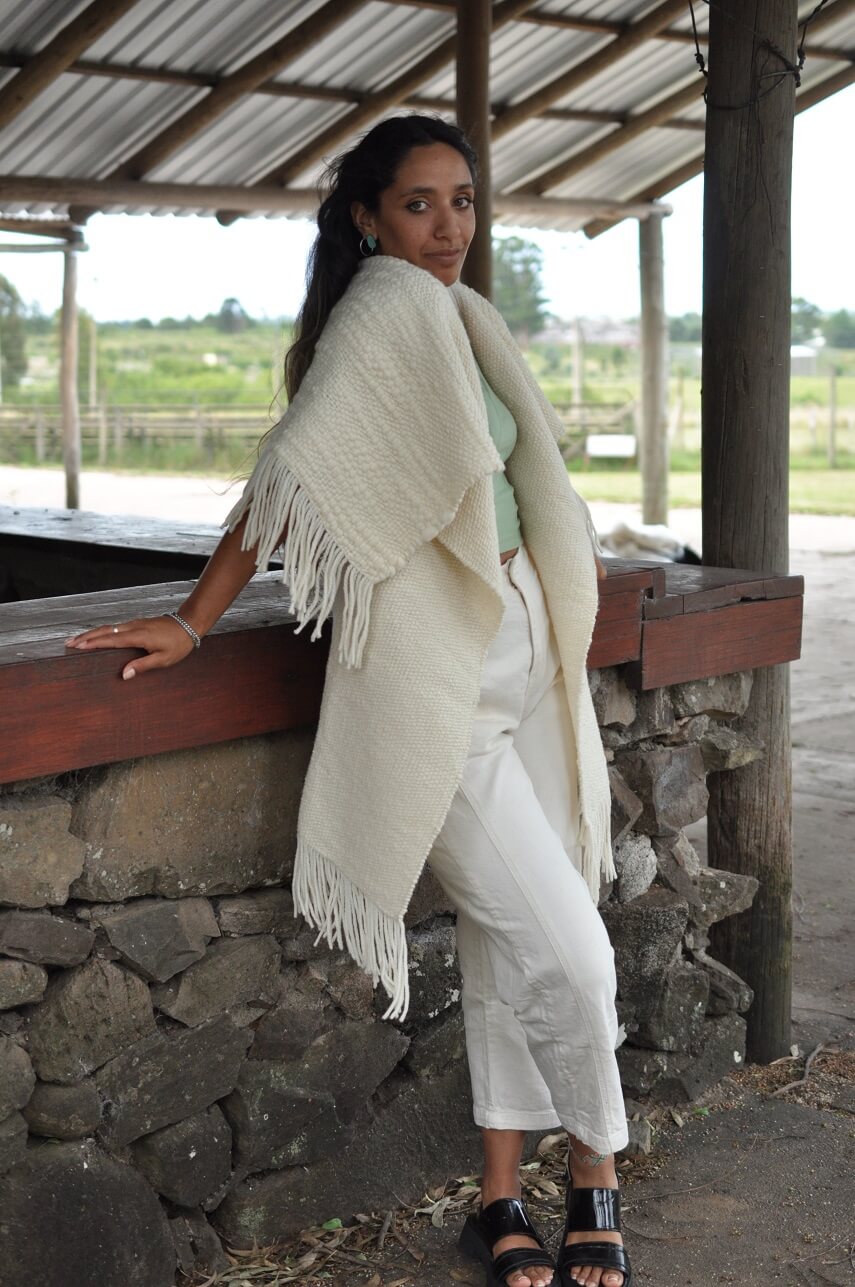 Medidas: 1.20 x 1.15. Confeccionada en lana merino flamé.