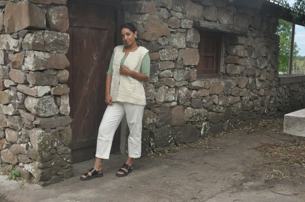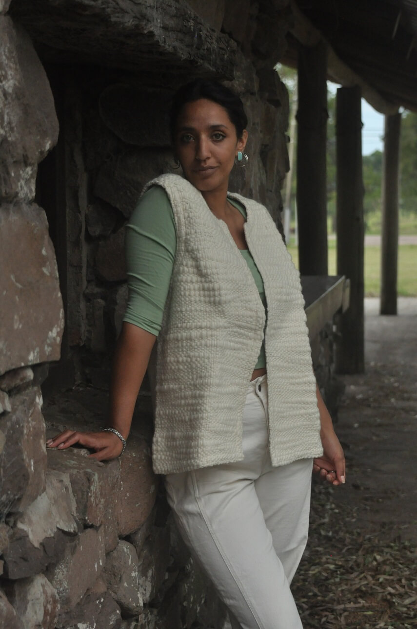Chaleco natural con delantera flamé